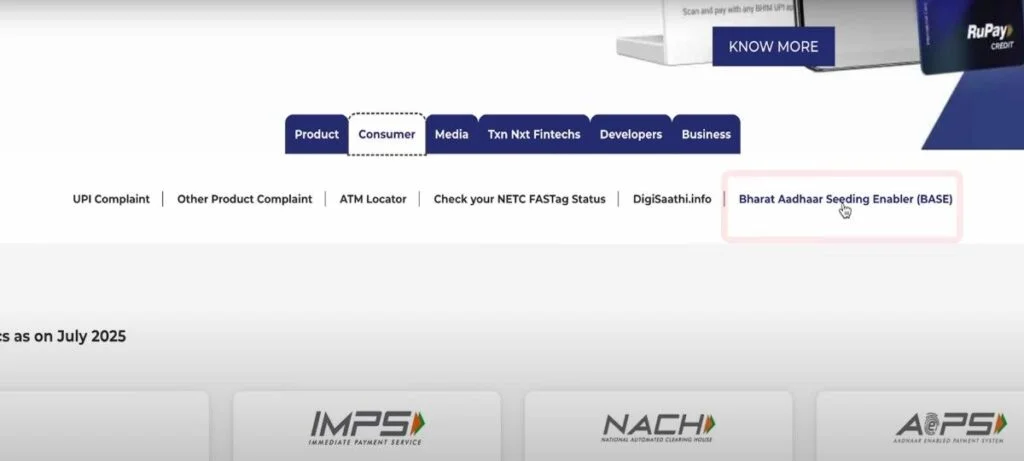 - अब आप Bharat Aadhar Seeding Enabler (BASE) के विकल्प पर क्लिक करना होगा।