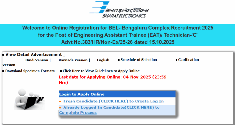 BEL Non Executive Recruitment 2025 में आवेदन करने की अंतिम तिथि 04 नवंबर 2025 है।