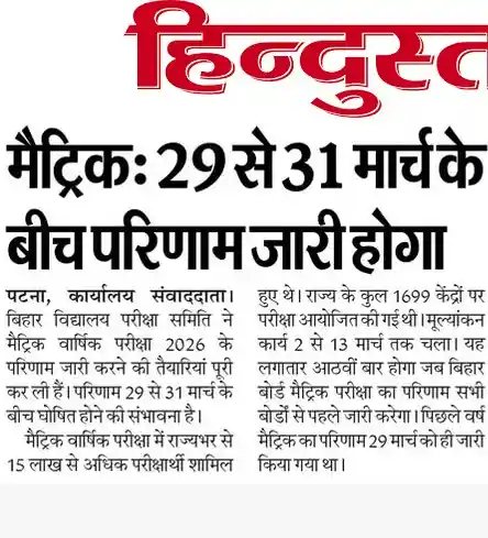 दोस्तो आज के इस लेख में हमने आपको Bihar Board 10th Result 2026 के बारे में संपूर्ण जानकारी प्रदान की है मै आशा करता हु कि आपको यह जानकारी पसंद आएगी यदि आपको यह जानकारी पसंद आती है, तो इस लेख को अपने दोस्तों और जानने वालो के साथ जरूर शेयर करें और यदि आपके मन में इस लेख से संबंधित कोई भी प्रश्न या सुझाव हो तो उसे भी आप नीचे दिए गए कॉमेंट बॉक्स में लिखकर हमारे साथ जरूर शेयर करें।