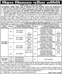 - 16 नवंबर: समाजशास्त्र और संगीत (आर्ट्स स्ट्रीम) – इन विषयों की परीक्षा में कला वर्ग के छात्रों को सम्मिलित किया गया है।