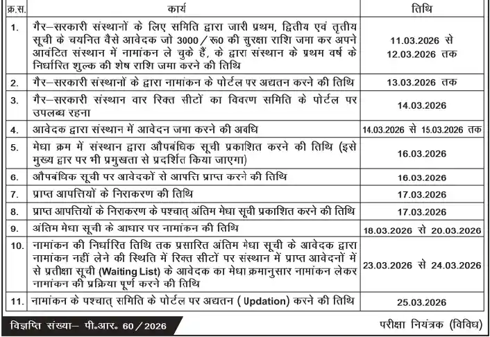 - उम्मीदवार को पहले तीन चरणों में सीट मिली हो लेकिन नामांकन न लिया हो या शुल्क न जमा होने के कारण रद्द हुआ हो।