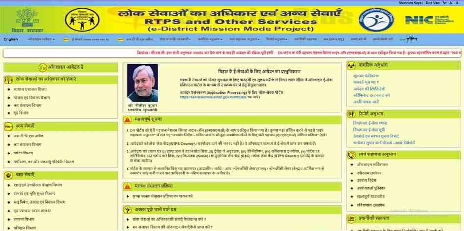 आधिकारिक वेबसाइट https://serviceonline.bihar.gov.in/