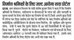यदि आप भी बिहार के निर्माण श्रमिक हैं, तो इस नए पोर्टल के बारे में पूरी जानकारी रखें और जैसे ही यह चालू हो, अपने पंजीकरण और योजनाओं के लाभ के लिए आवेदन करें।