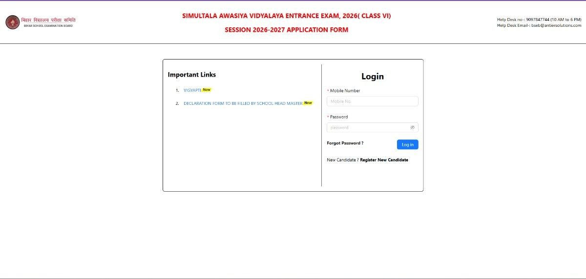 How To Online Apply Bihar SAV Class 6 Admission 2025