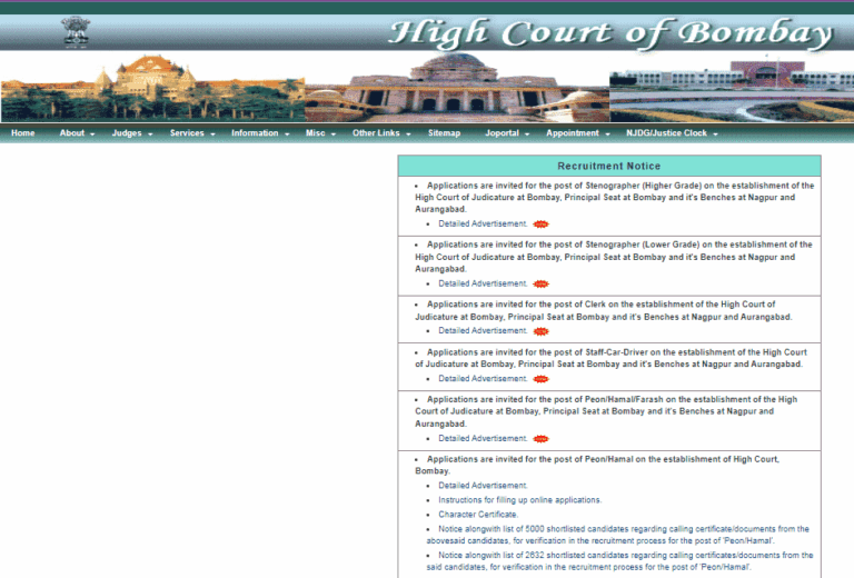 Bombay High Court Clerk Vacancy 2025 के लिए आप इसकी आधिकारिक वेबसाइट पर जाकर बहुत आसानी से ऑनलाइन आवेदन कर पाएंगें