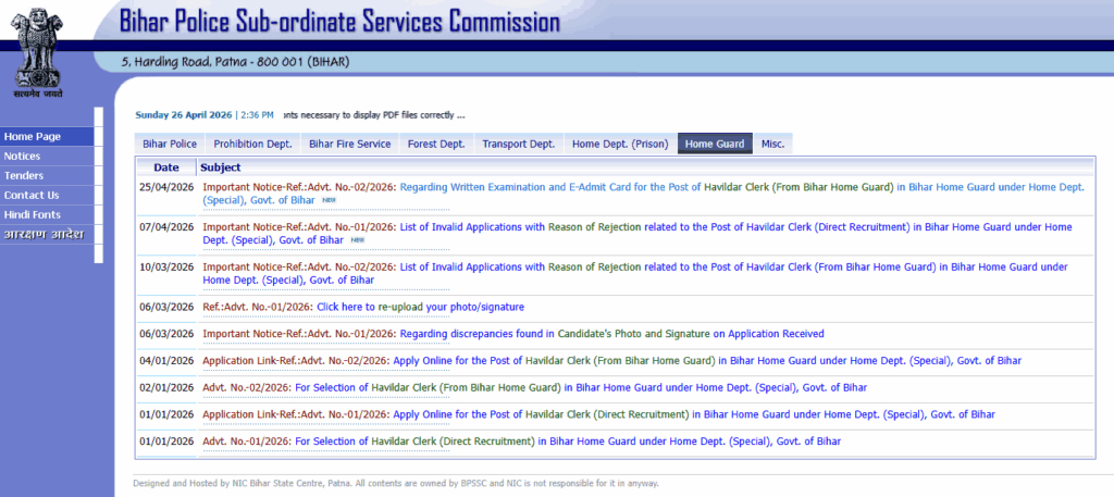 BPSSC Havildar Instructor Vacancy 2026 के लिए आप बिहार पुलिस अधीनस्थ सेवा आयोग (BPSSC) की आधिकारिक वेबसाइट पर जाकर बहुत आसानी से ऑनलाइन आवेदन कर पाएंगे।