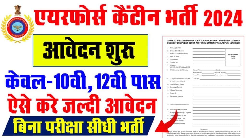 हम आपको अपने इस आर्टिकल के माध्यम से विस्तार पूर्वक से बताएंगे कि आप इन पदों पर कैसे आवेदन कर सकते हैं इसके लिए क्या प्रक्रिया रखी गई है इस भर्ती के अंतर्गत कब से लेकर कब तक आवेदन कर सकते हैं इसके बारे में पूरी जानकारी हम आपको अपने ही आर्टिकल में विस्तार पूर्वक से Delhi Air Force Canteen Vacancy 2024 के बारे में प्रदान करें