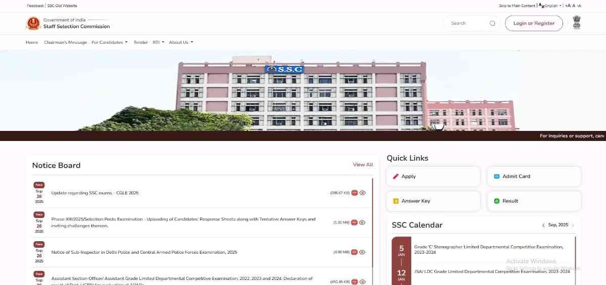 - आवेदन करने के लिए सबसे पहले आप कर्मचारी चयन आयोग (SSC) की आधिकारिक वेबसाइट के होम पेज पर जाए।