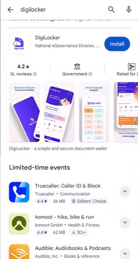 - सबसे पहले आपको अपने मोबाइल के प्ले स्टोर में जाकर Digilocker App को डाउनलोड करना होगा।