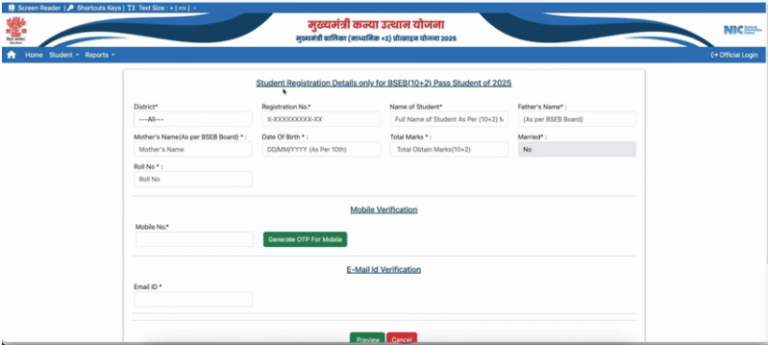 - क्लिक करने के बाद आपके सामने Student Registration Form खुलकर आ जाएगा जिसमें कि आपको मांगी जाने वाली सभी जानकारी को भर देना होगा।