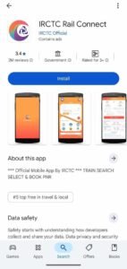 - प्लेस्टोर पर जाने के बाद आपको Search Box में IRCTC Rail Connect को सर्च करके ऐप को डाउनलोड कर लेना होगा।