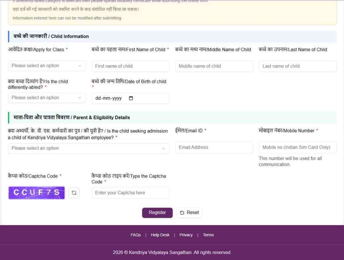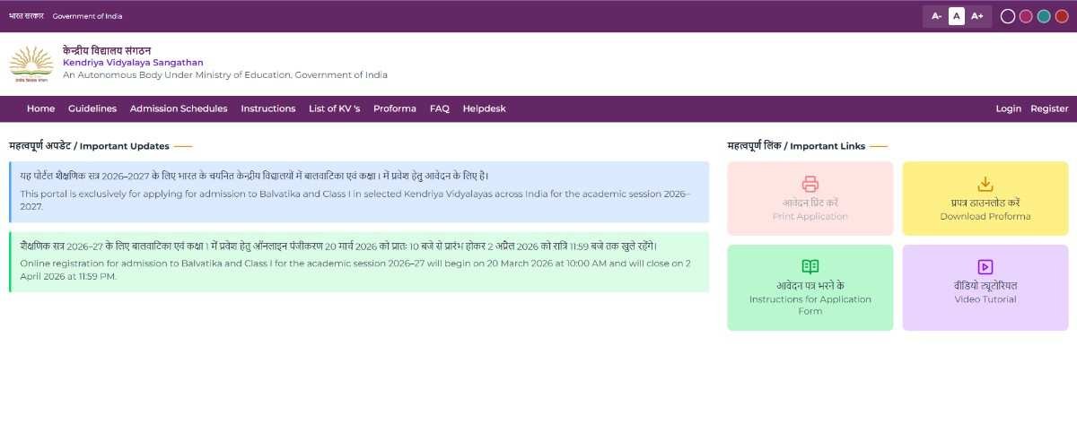 KVS Class 1 Admission Online Form 2026 को आप केंद्रीय विद्यालय संगठन की आधिकारिक वेबसाइट पर जाकर बहुत आसानी से आवेदन फार्म को भर पाएंगे।