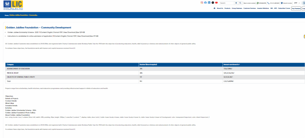 | फाउंडेशन का नाम | LIC Golden Jubilee Foundation (Life Insurance Corporation of India) |