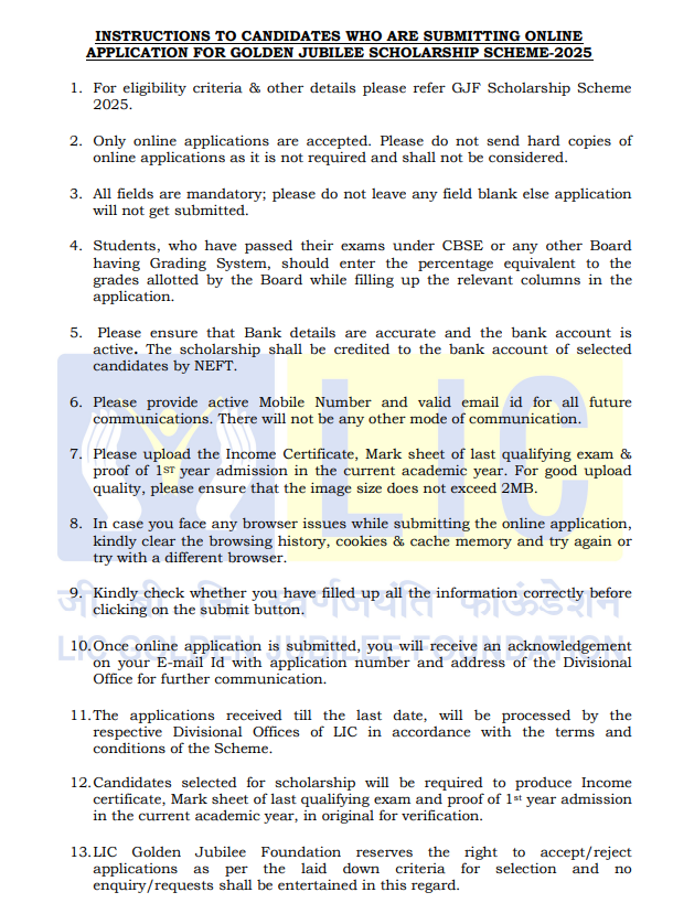 How To Online Apply LIC Golden Jubilee Scholarship 2025
