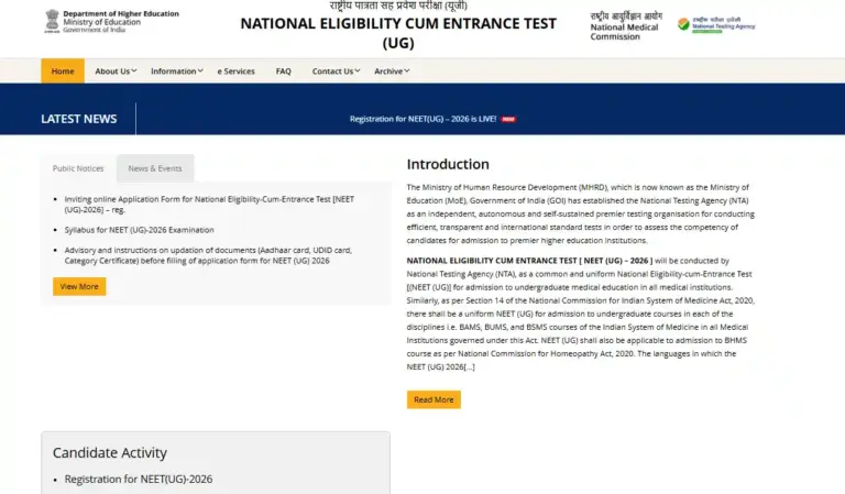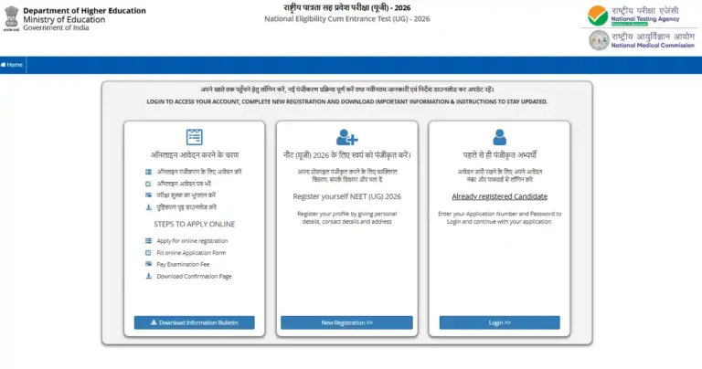 NEET UG 2026 के लिए आप इसकी आधिकारिक वेबसाइट पर जाकर बहुत आसनी से ऑनलाइन आवेदन कर पाएंगे।