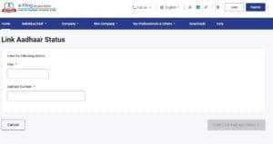 - चरण 3: ‘लिंक आधार स्टेटस’ पर क्लिक करें : इस सेक्शन में आपको “Link Aadhaar Status” का विकल्प मिलेगा। इस पर क्लिक करें।