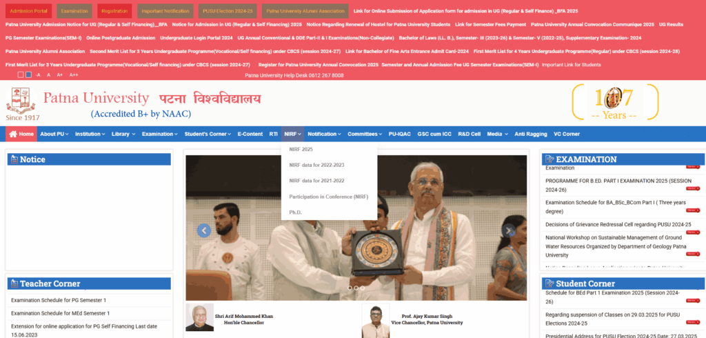 - आवेदन करने के लिए सबसे पहले आप पटना यूनिवर्सिटी की आधिकारिक वेबसाइट के होम पेज पर जाए।