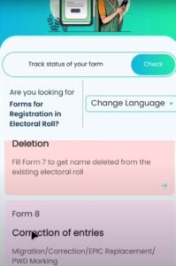 • उस विकल्प पर क्लिक करने के बाद आपके सामने एक नया पेज ओपन हो जाएगा उस पेज में आपको Form 8 Correction of entries के विकल्प पर क्लिक कर देना होगा।