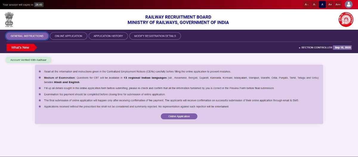 रेलवे ग्रुप डी का आवेदन फॉर्म का स्टेटस 23 सितंबर 2025 को जारी किया गया है।