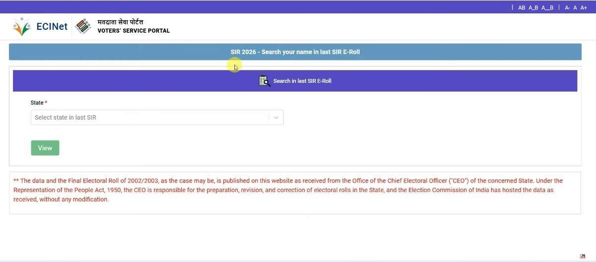 • होम पेज पर जाने के बाद आपको Search Your Name in Last SIR के ऑप्शन पर क्लिक करना होगा।