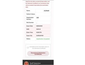 उपरोक्त सभी स्टेप्स को फॉलो करके आप आसानी से अपना एडमिट कार्ड डाउनलोड कर सकते हैं