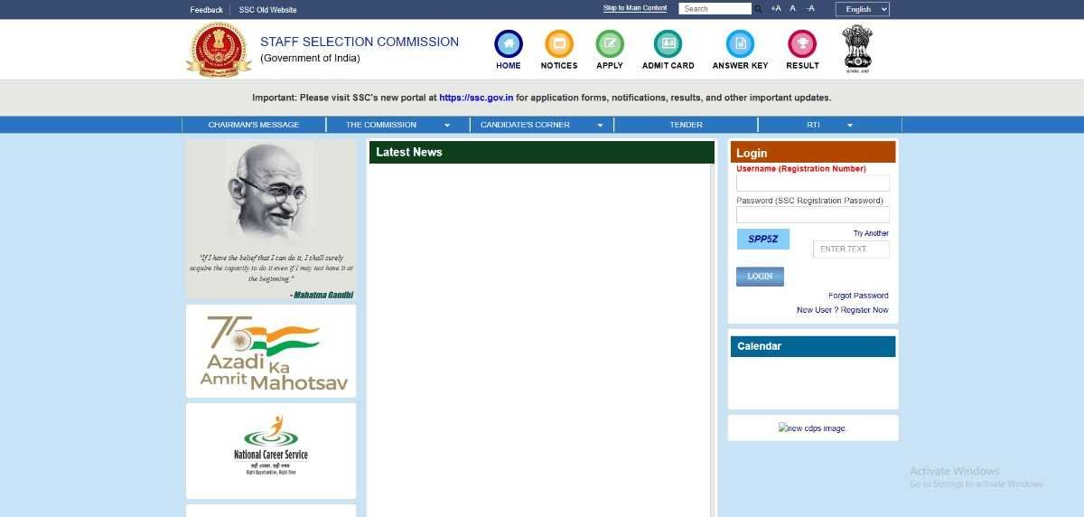 - एडमिट कार्ड डाउनलोड करने के लिए सबसे पहले आप कर्मचारी चयन आयोग (SSC) की आधिकारिक वेबसाइट के होम पेज पर जाएं।