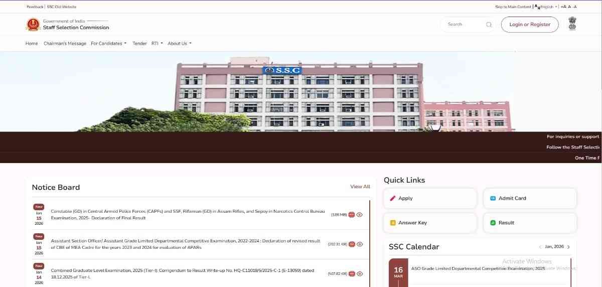 आधिकारिक वेबसाइट https://ssc.gov.in/