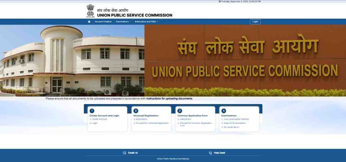 - सबसे पहले आप संघ लोक सेवा आयोग की आधिकारिक वेबसाइट के होम पेज पर जाएं।