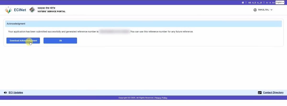 - अब आपके सामने नया पेज खुलकर आ जाएगा जिसमें कि आपको Correction of Entries in Existing Electoral Roll के ऑप्शन को सलेक्ट करने के बाद आपको Ok के ऑप्शन पर क्लिक कर देना होगा।