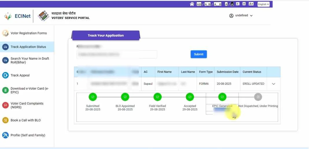 - क्लिक करने के बाद आपके सामने आपके वोटर आईडी कार्ड का स्टेट्स खुलकर आ जाएगा।